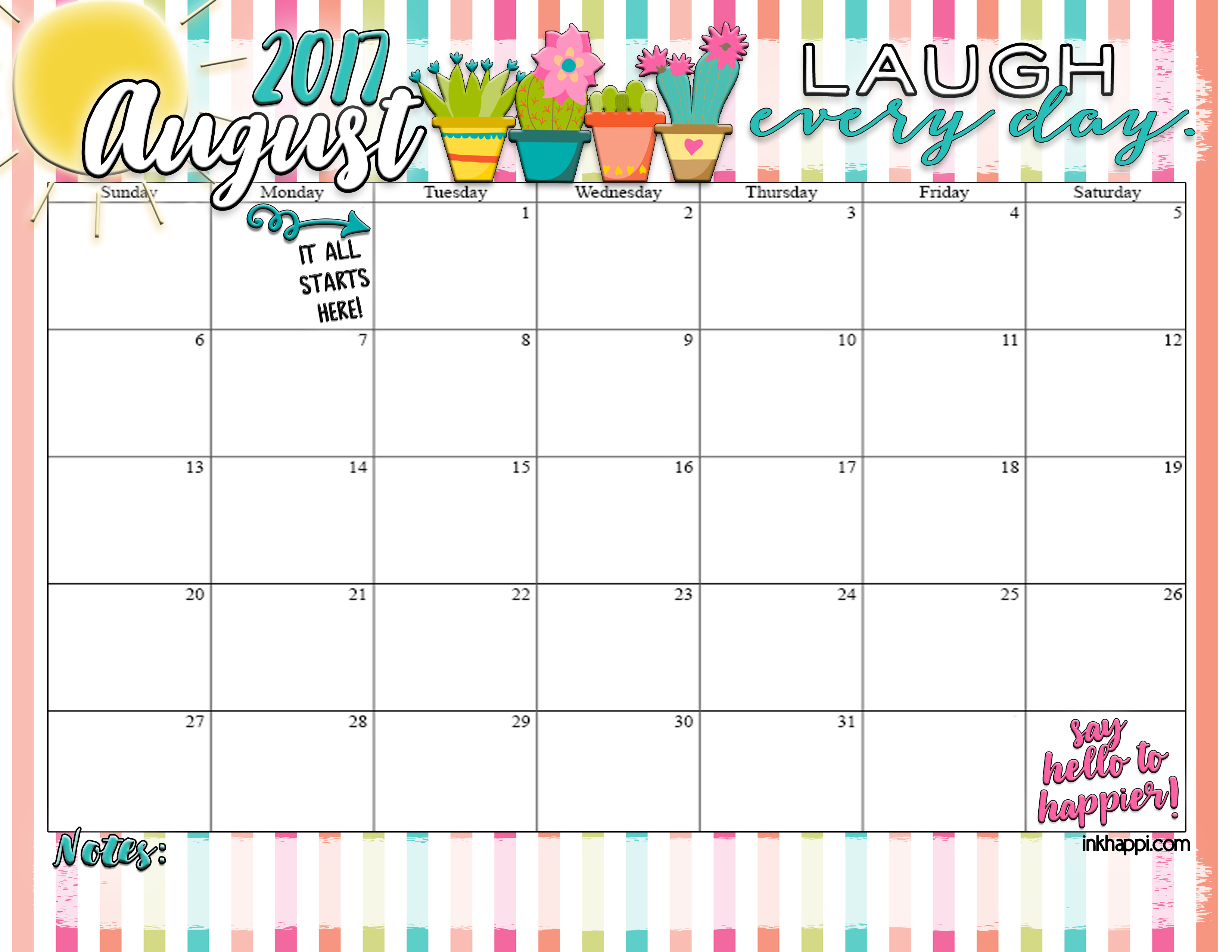 It’s time to share the August 2017 Calendar. It’s colorful, fun, encourages laughing and hopefully it’ll make your life a bit better because…