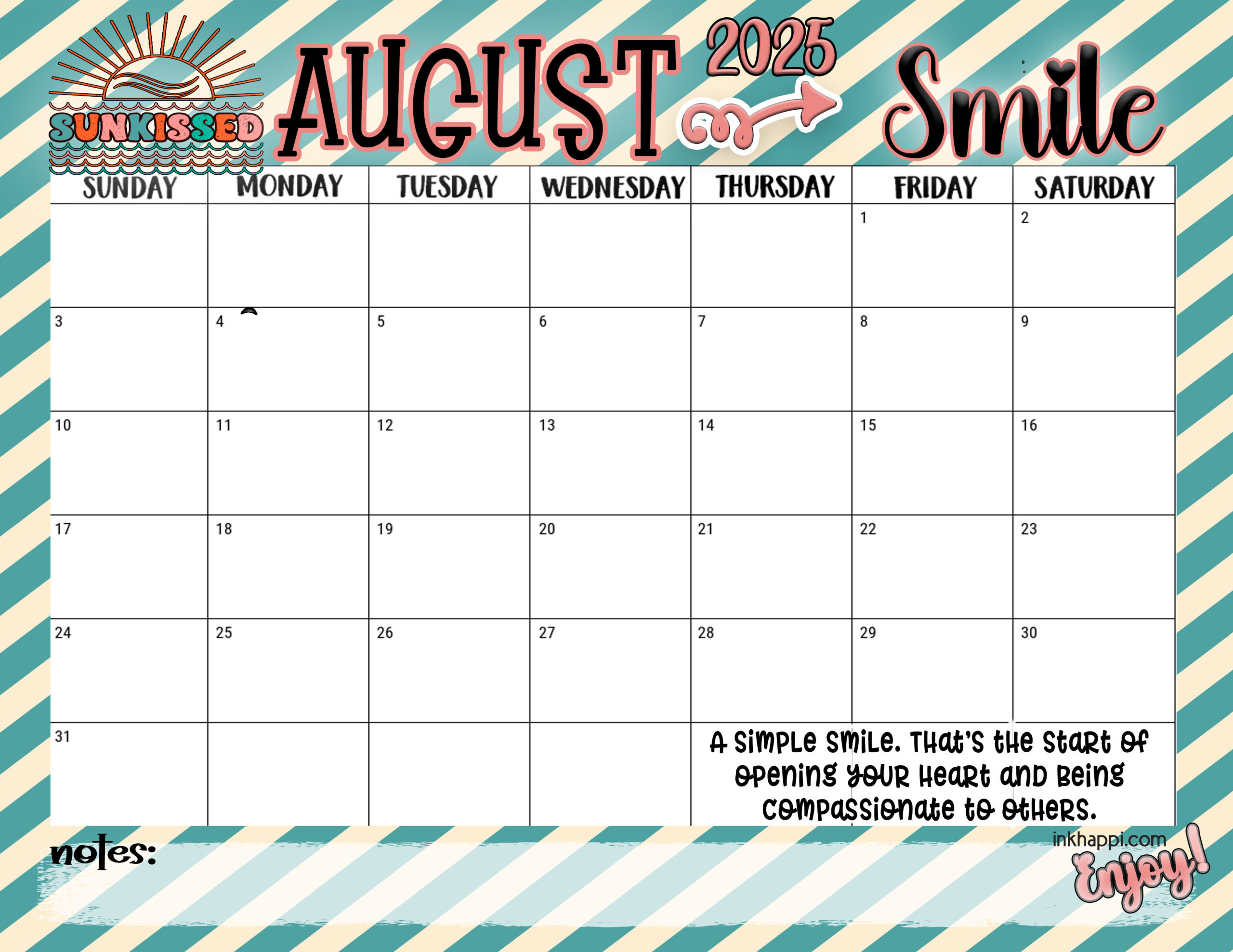 You can use the August 2025 Calendar as a reminder how important it can be to smile!