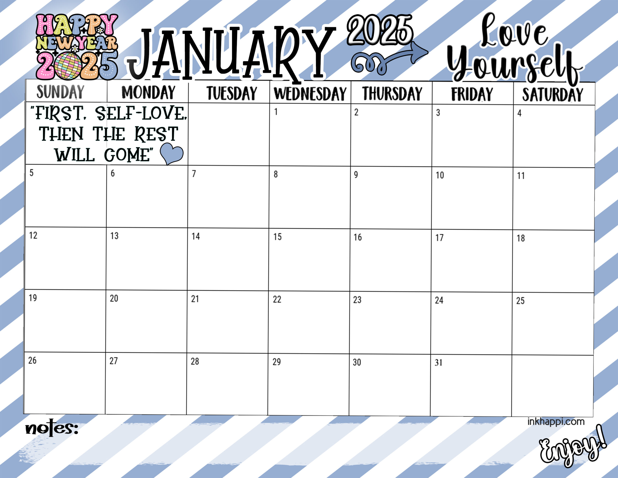 January 2025 Calendar and a Message to Love Yourself