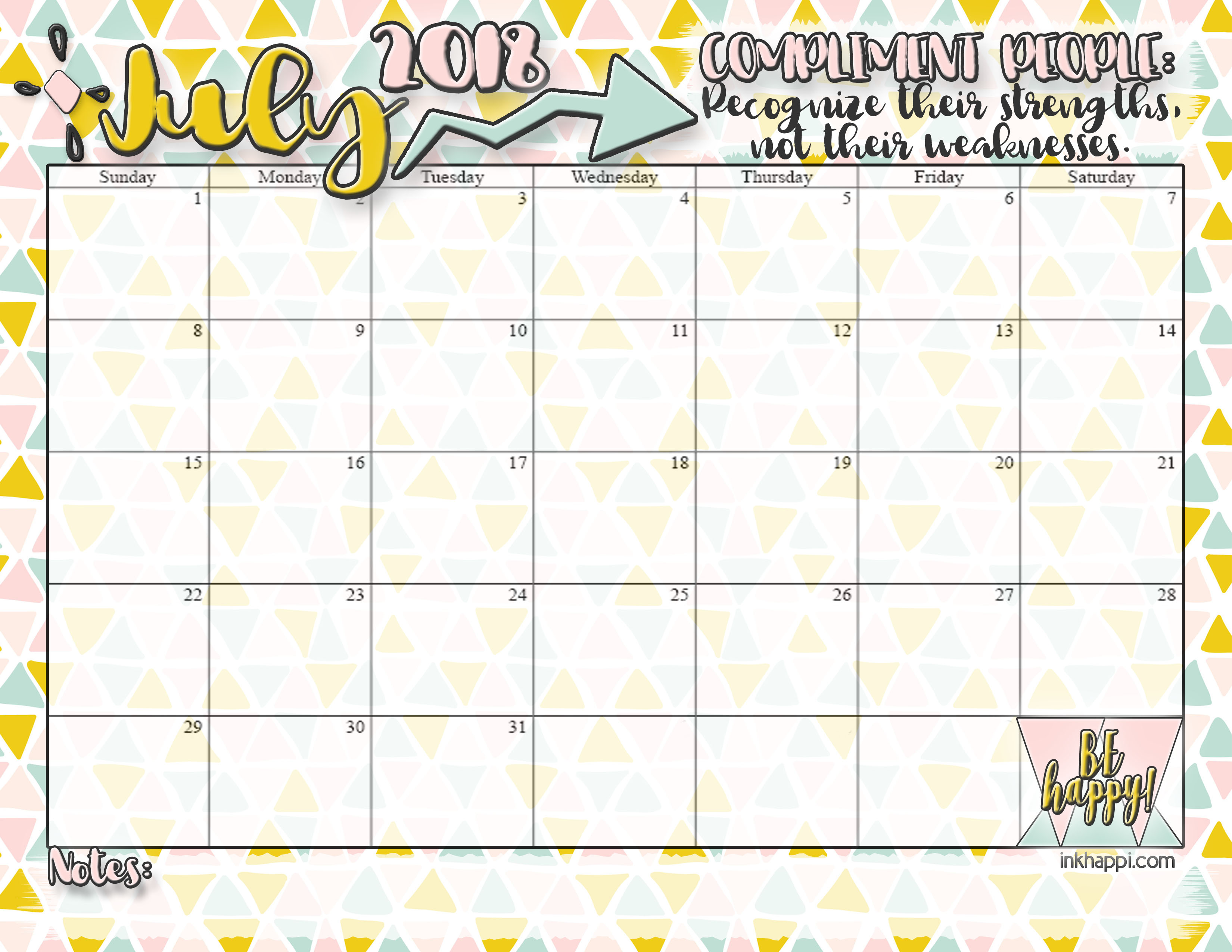 Hello June, and Hello July 2018 calendar! We are about half way through 2018. How has your year been so far? It’s time to ramp up your summer and start planning for a super July. I’m also sharing a motivational thought that will make you very well liked! 🙂