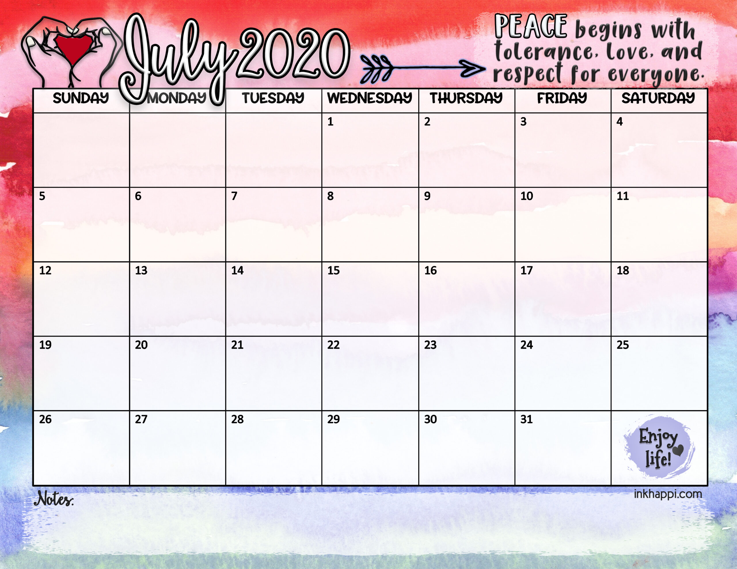 Well its time for the July 2020 Calendar and a message about tolerance and more! I guess this means 2020 is halfway over and at this moment I’m thinking it can’t go fast enough! Times are definitely challenging right now. I hope you can still find joy this month. It’s possible. Hold your loved ones close and share the love with everyone!