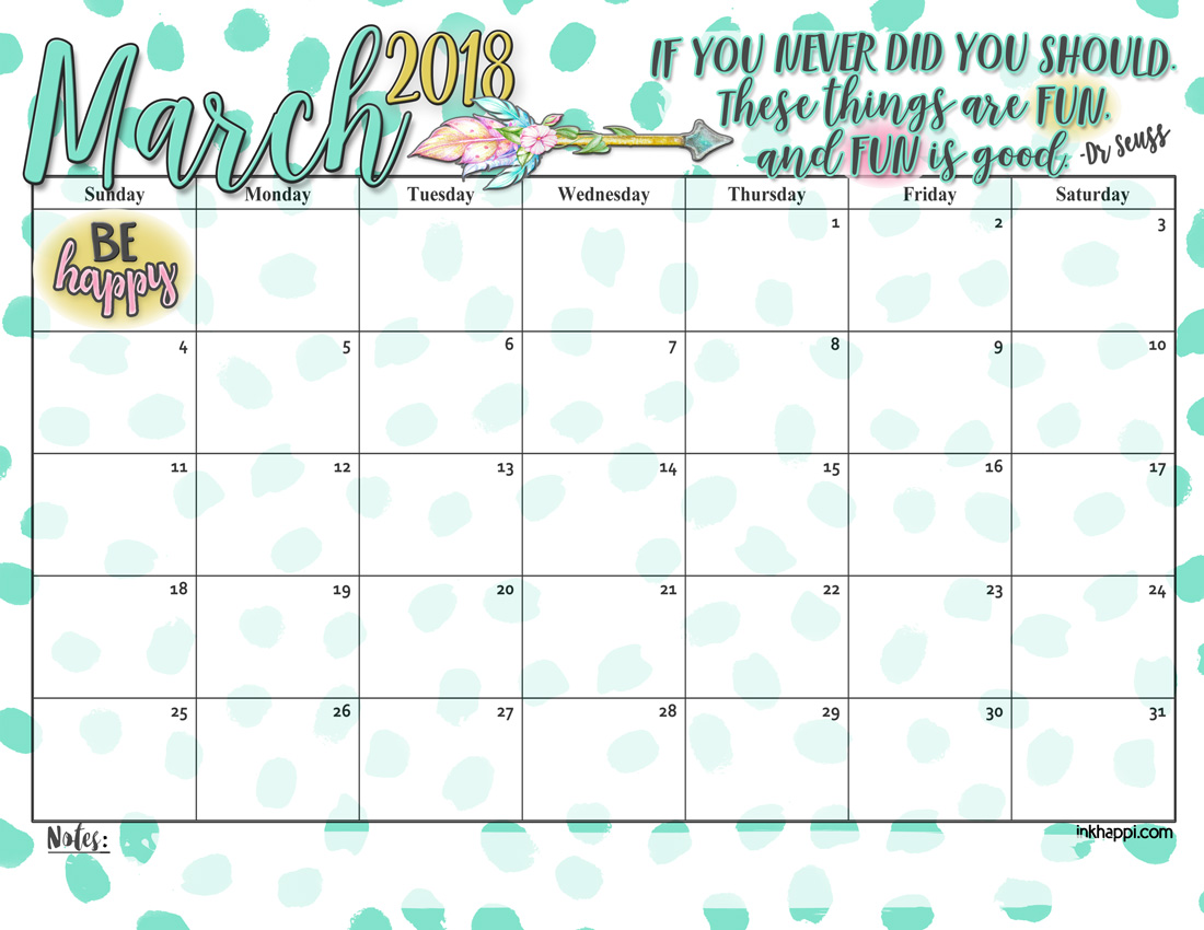The March 2018 Calendar has arrived. I’m feeling some good vibes from this calendar and I’m happy to pass those good vibes along to you! So here’s to March 2018!