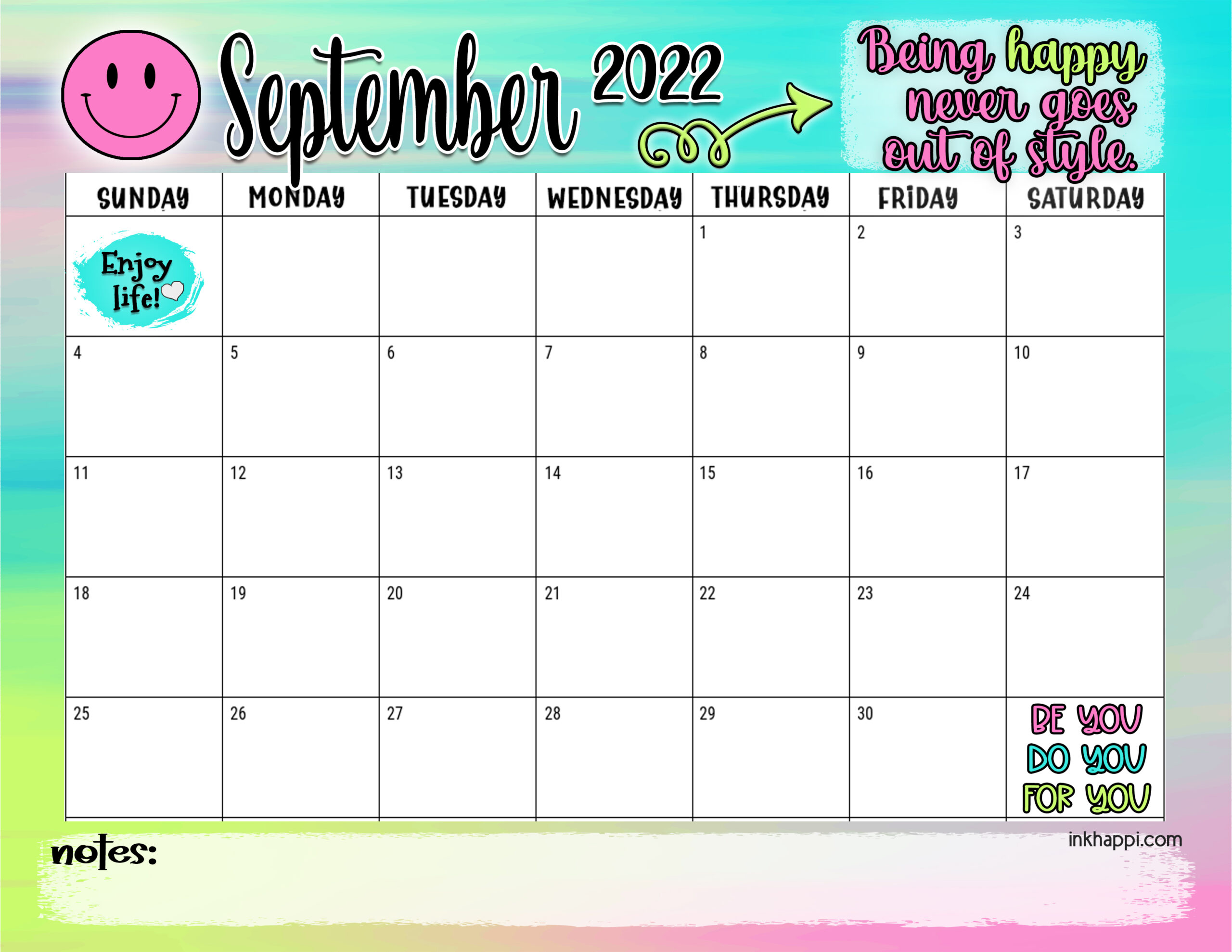 It’s calendar time! I’m here with more free printables : the September 2022 Calendar and another happy thought. It’s crazy how fast 2022 has gone. I’m looking forward to fall but in Arizona we still have a few months until it cools off!